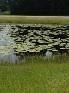 I started to notice some of the wildlife in the area as I passed a small pond filled with water lillies. There were many birds gathering there and it was a really beautiful spot. I kept walking on the my green path and felt confident it was the right one each time I came across a tree with a mark of green paint on it that assured me I was still on the green trail. I reached a point where I had to choose to go right or left. Both were marked with a sign showing a green arrow pointing in each direction. I was a little confused because I didn’t remember there being a fork in the path I had chosen. It was just a big circle that would have brought me right back where I started. Oh well, I was sure it was the right trail so I picked a direction and kept trekking along.